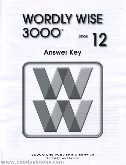 This answer key for Wordly Wise 3000 Book 12 provides the answers for the lessons and crossword puzzles scattered throughout the book. Also available, though not stocked, is a Teacher Resource Package.
