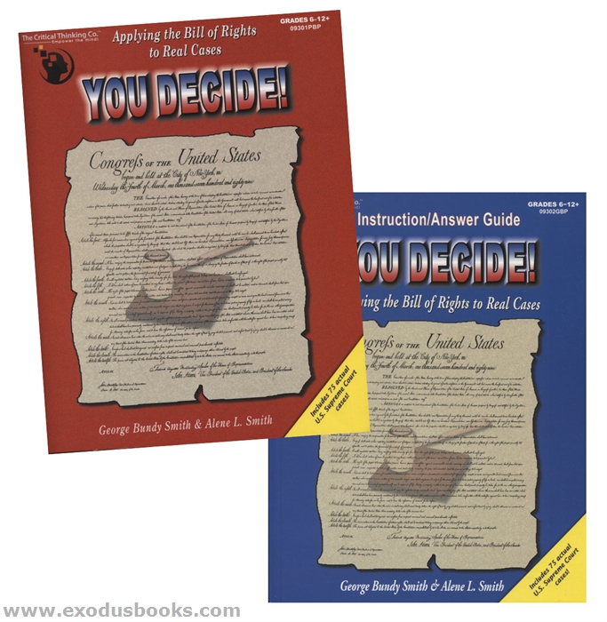 With You Decide! court is in session. The honorable "judges," your children, will be asked to decide cases based on the first eight amendments to the Constitution. Your children will sharpen their critical thinking skills and their legal and historical knowledge as they analyze the amendments, discover their origins, and rule on actual cases presented before the U.S. Supreme Court.